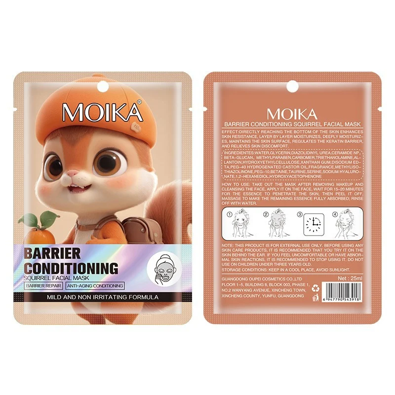 Meet the MOIKA Barrier Conditioning Squirrel Facial Mask, a playful yet powerful addition to your skincare routine. This cartoon animal mask sheet is specially developed to protect and care for fragile skin, delivering intense hydration and targeted repair in a fun, whimsical form.