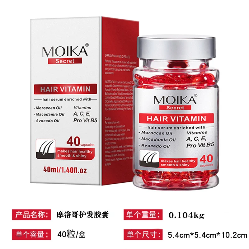 Introducing MOIKA Hair Vitamin Secret Serum, a premium hair care solution in convenient capsule form. Enriched with a powerful blend of Moroccan Oil, Macadamia Oil, and Avocado Oil, this serum is specifically designed to rescue and revitalize dry, tangled, damaged, and color-treated hair. It delivers deep, targeted nutrition to the hair core for visible repair.