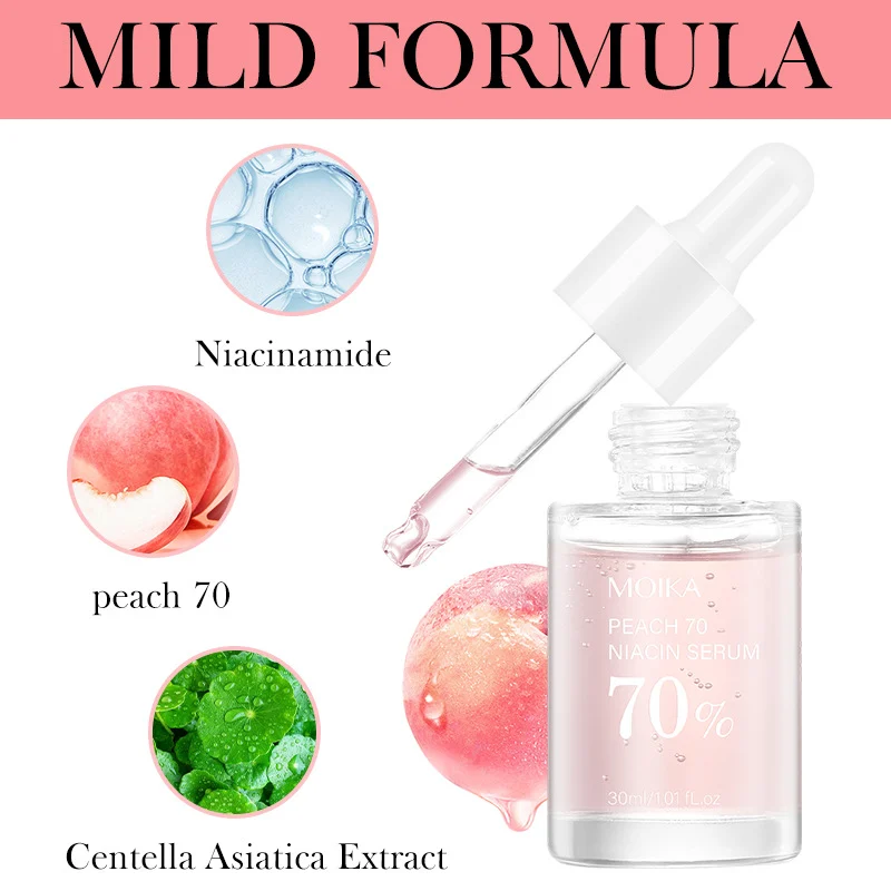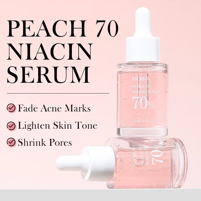 Revitalize your complexion with the MOIKA Peach 70 Niacinamide Serum, a powerful yet gentle facial essence designed to target multiple skin concerns. Infused with a potent 70% Peach complex and Niacinamide, this lightweight serum works to visibly brighten dull skin, fade acne marks, shrink enlarged pores, and deliver deep, lasting hydration for a smoother, more radiant appearance.