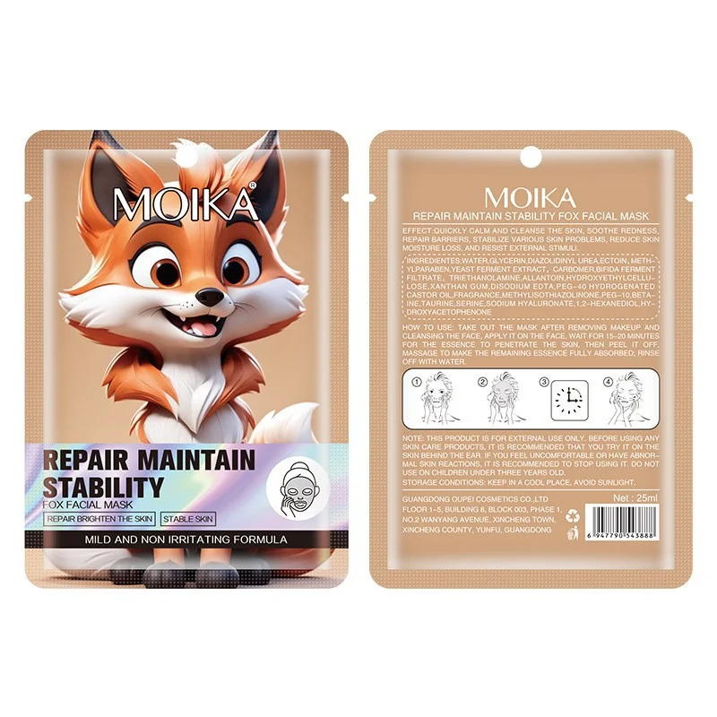 This unique animal-shaped facial mask is specially developed to address fragile skin conditions. Infused with Calendula and Centella Asiatica extracts, it provides first-aid repair for post-sunburn skin, helping to soothe redness, reduce sensitivity, and repair the skin barrier. It is designed to offer intense moisturizing, anti-aging benefits, and oil control for a stabilized, glowing complexion.